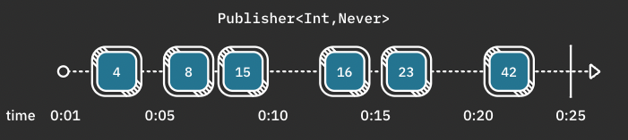 Publisher.Failure 는 게시자가 실패할 경우 던질 수 있는 오류 유형이다. 게시자가 절대 실패할 수 없는 경우 Never 실패 유형을 지정해준다.
