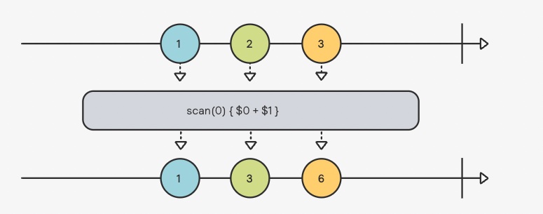 업스트림 게시자가 내보낸 현재값을 해당 클로저에서 반환된 마지막 값과 함께 클로저에 제공합니다.