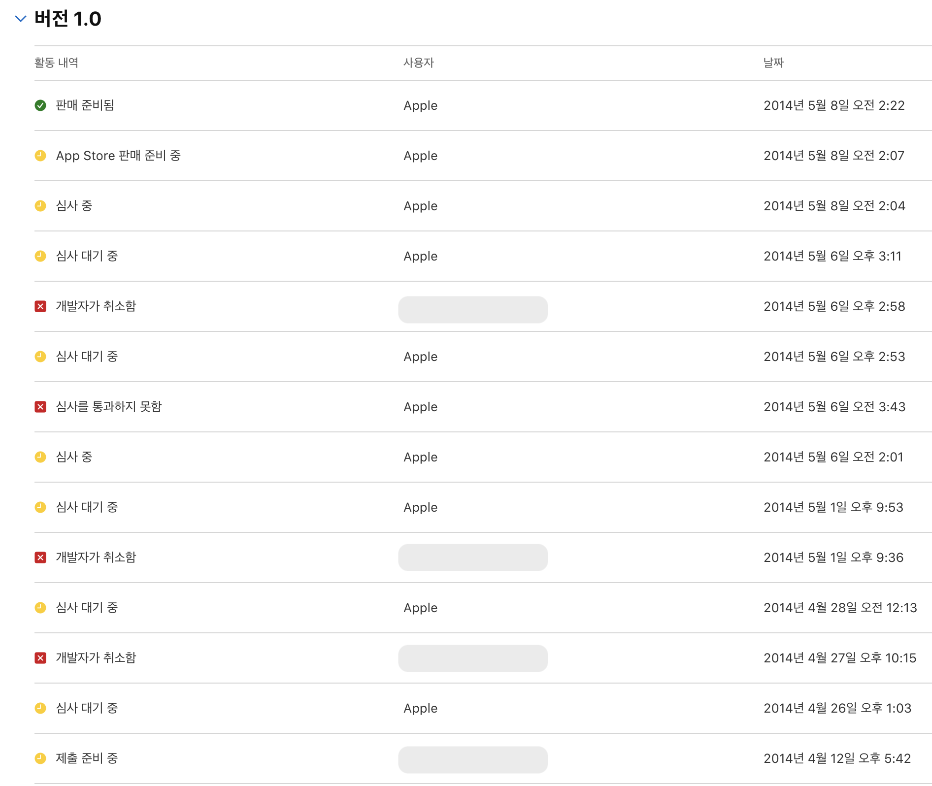 버전 기록을 쭉 훑어봤다. 14년 5월에 출시 후 14년 12월까지 약 반년간 17번의 업데이트를 했다고 기록이 나온다.