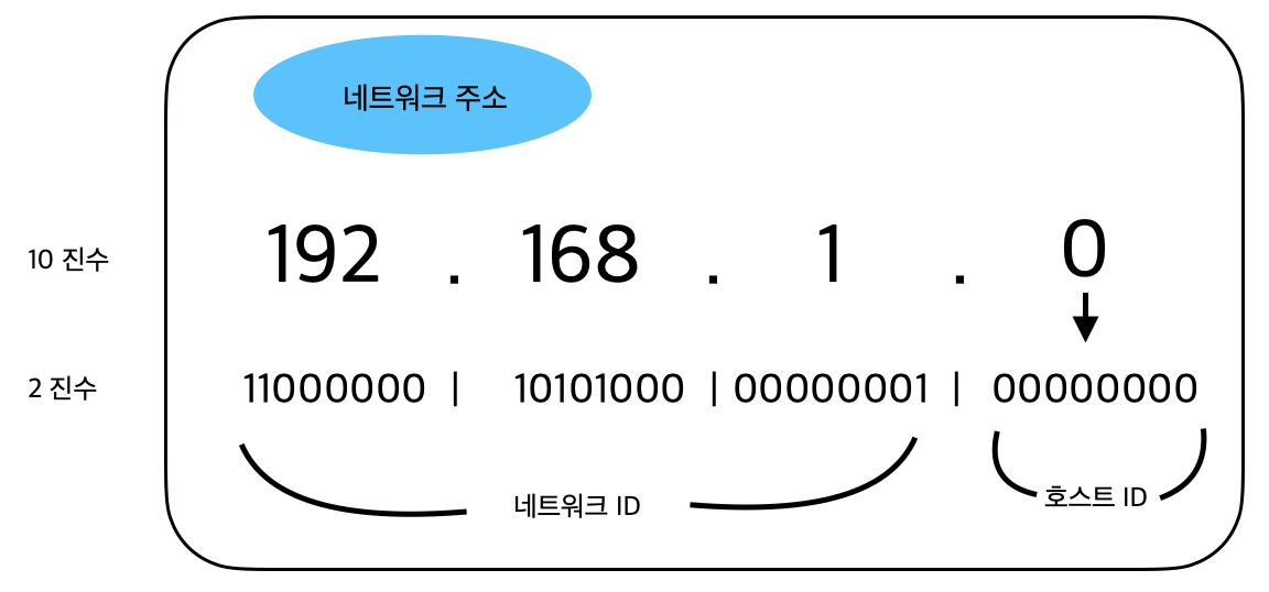 네트워크 주소는 호스트 ID가 10진수로 0이고, 2진수면 00000000인 주소이다.