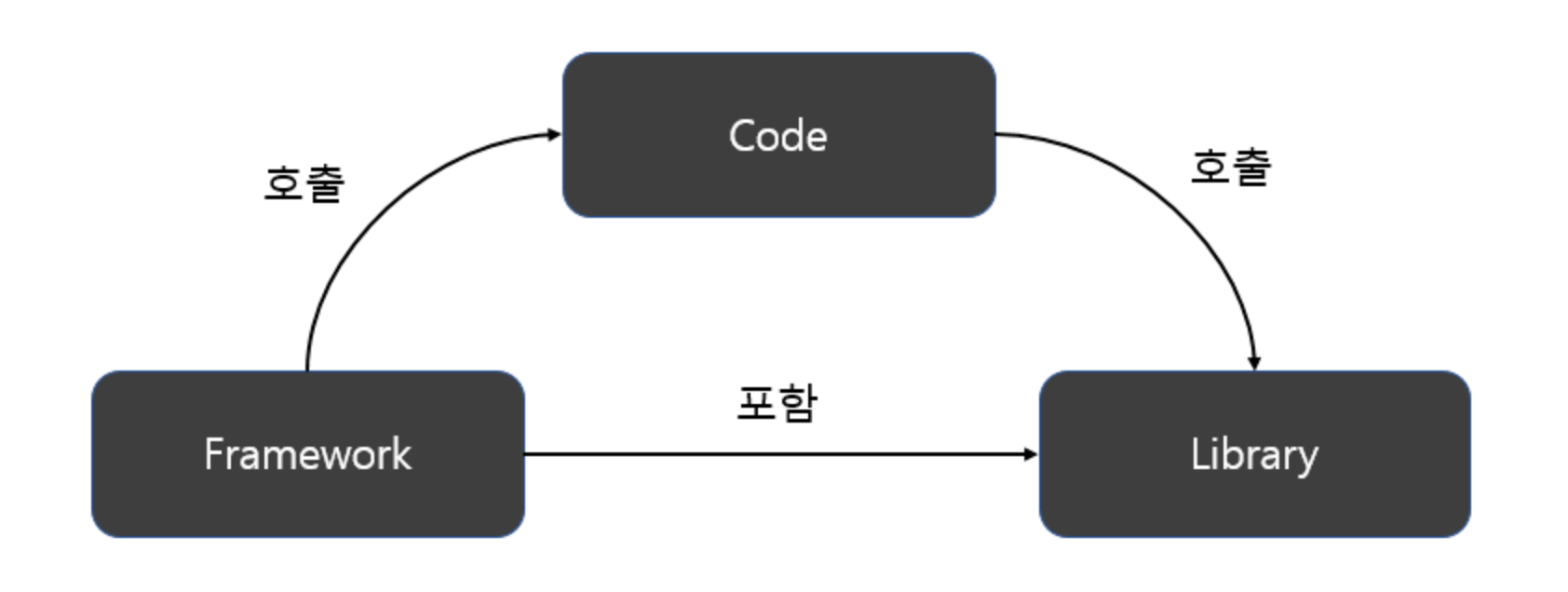 프레임워크는 전체적인 흐름을 스스로 갖고 있으며 사용자는 그 안에서 코드를 작성하는 반면,