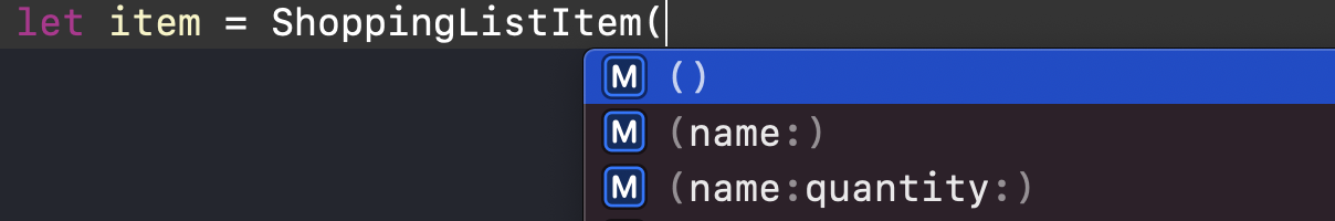 ShoppingListItem은 상위 클래스의 지정이니셜라이저를 따로 정의하지 않았기 때문에 상위 클래스의 지정이니셜라이저를 모두 자동상속한다.