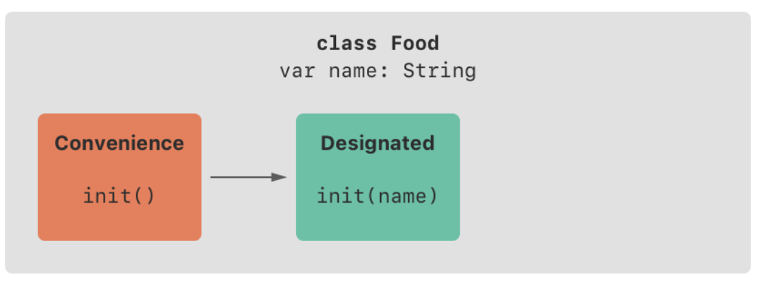 - 편의 이니셜라이저는 궁극적으로 지정 이니셜라이저를 호출해야한다.