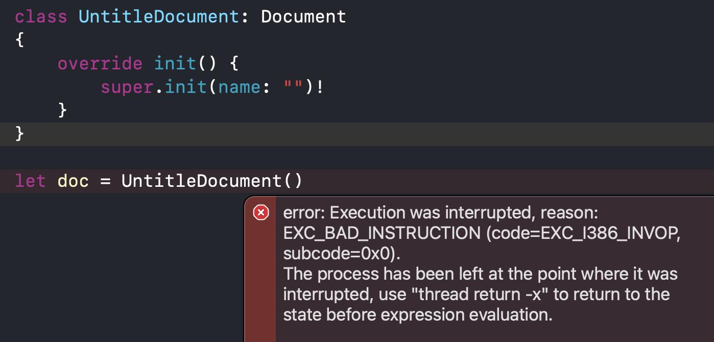 AutomaticallyNamedDocument의 지정이니셜라이저 init(name:)은 Document의 실패가능한 이니셜라이저를 nonFailable이니셜라이저로 재정의했다.